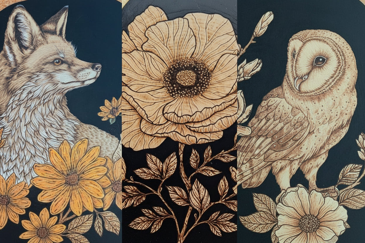 Welcome to Scratched and Burnt — where wood, fire, and imagination come together. I’m Erika, a pyrography artist who loves blending fine detail with playful, mythical, and whimsical themes. Every piece is handmade, sealed for longevity, and crafted to bring a bit of wonder to your space.