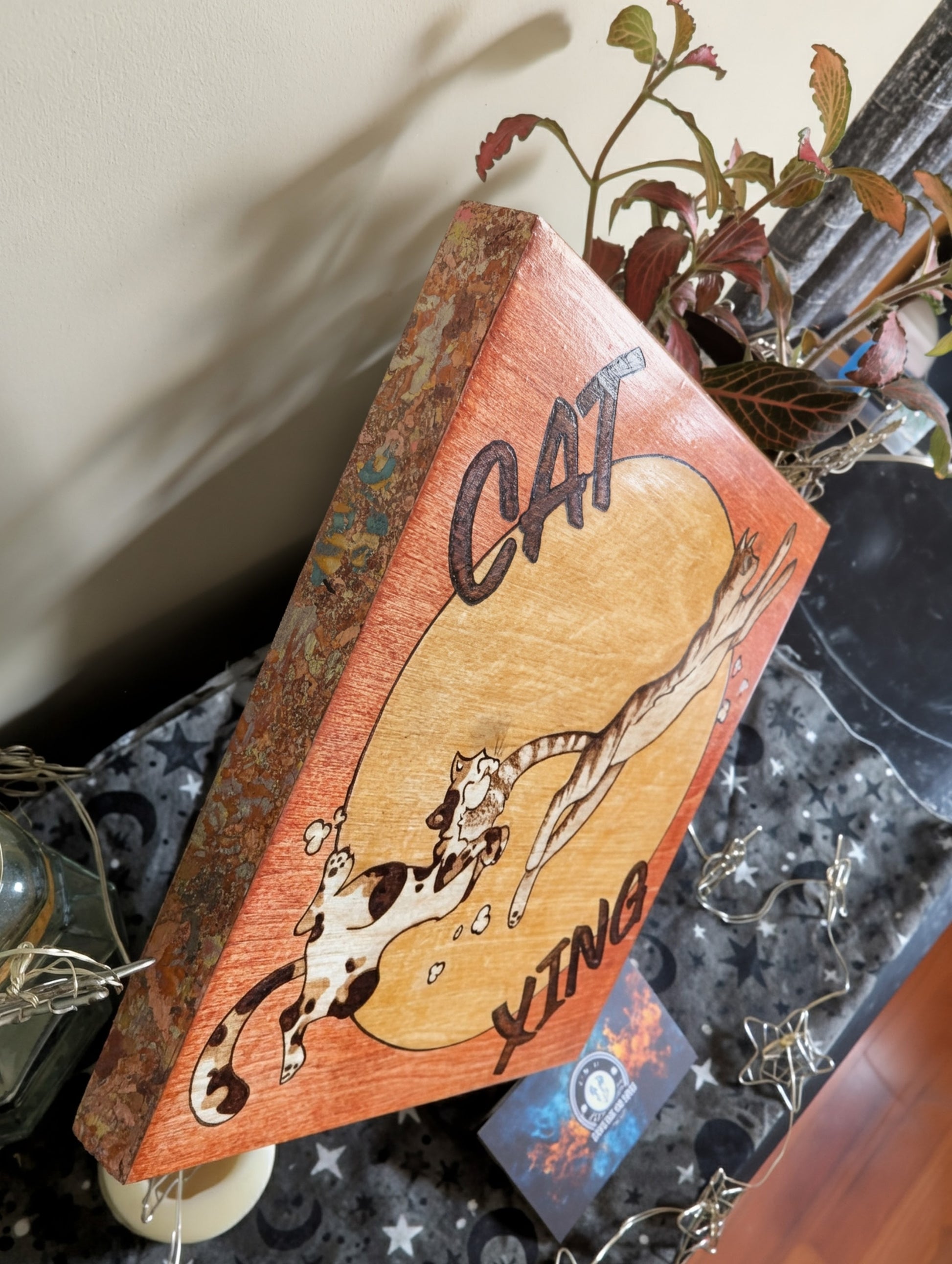 Cat - Xing Sign, Pyrography w/ Stain, Desk/Wall Art