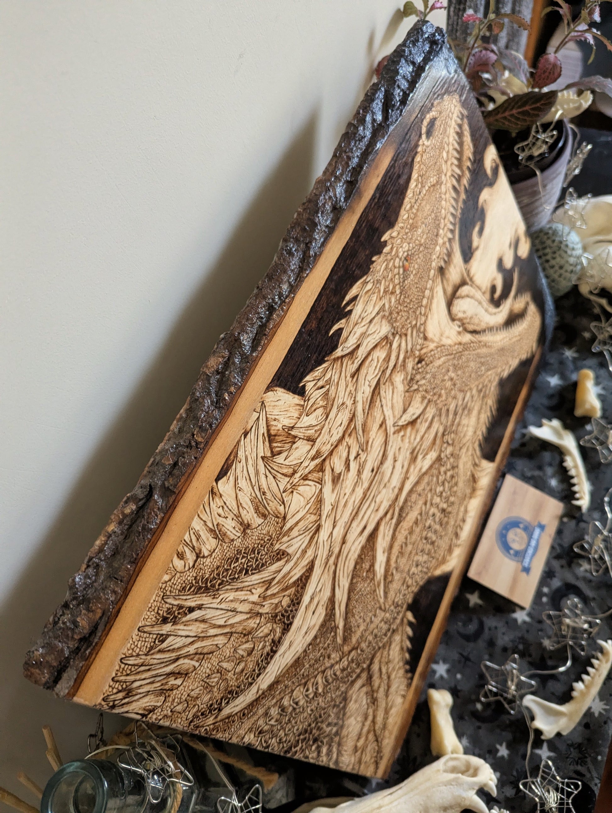 'Guardian Dragon', Pyrography on Basswood, Desk/Wall Art