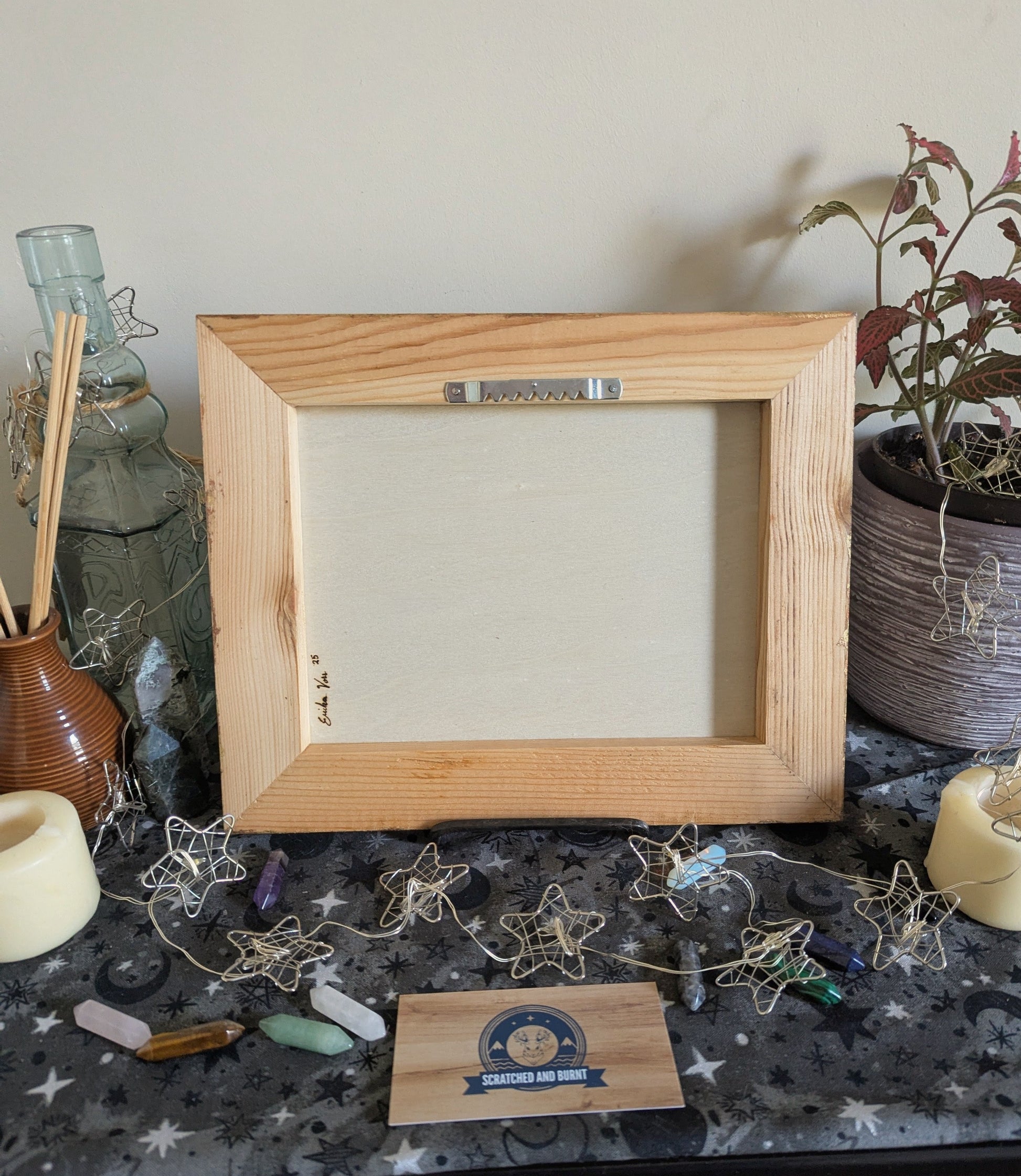 Sealed with a light coating of polycrylic gloss (slight shine and to prevent color fade and chipping of the wood). Gold and bronze foil coats the edges of the piece for a bit of extra shone. The wood is lightweight, so it is simple to hang anywhere. You can also display this artwork using a table display stand (not included).